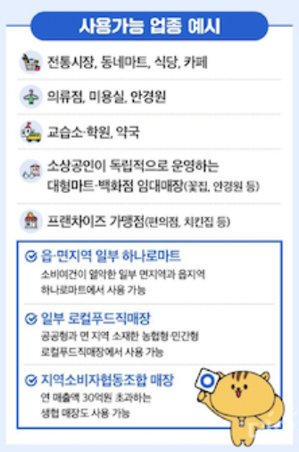 지역사랑상품권 : 해당 지자체 지역사랑상품권 가맹점 (지자체별 상이)