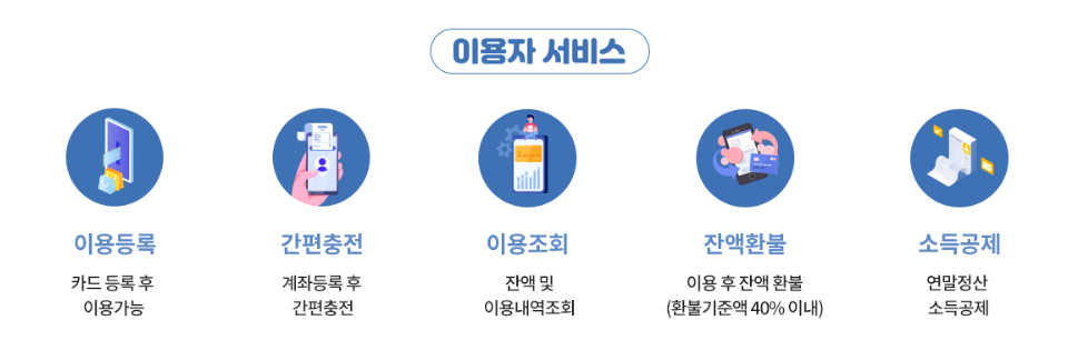 충전식 선불카드 방식이며, 카드형·모바일형·지류형 등 다양한 형태로 이용할 수 있습니다.